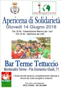 è per me un vero piacere invitarvi a un’Apericena di solidarietà che si svolgerà giovedì 14 Giugno 2018 presso il Bar Storico Tettuccio a Montecatini Terme P.le Domenico Giusti 71.