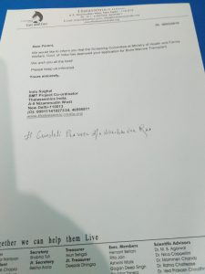 Ottobre 2019 – Il 14 ottobre Praveen viene ricoverato per procedere con il trapianto.